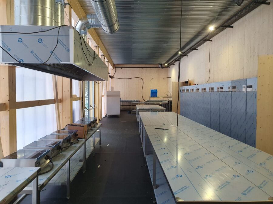 Die Arbeiten im LOFT 23 sind in vollem Gange und es geht zügig voran. Letzte Woche wurde die gesamte Kücheneinrichtung montiert und die Innentüren eingesetzt. Aktuell werden die Innenräume für die Sponsoren-Lounges und Garderoben ein- und ausgebaut. Die Übergabe an die Bauherrschaft rückt näher – bleibt gespannt!
