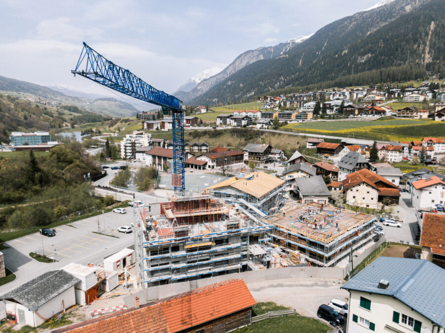 Dank des milden Winters auf 1200 m ü.M. konnten die Baumeister über die Wintermonate durcharbeiten und die 3 Häuser aufziehen. Das Dach des Hauses Curvér ist bereits aufgerichtet und das nächste folgt bald. Die Innenausbauarbeiten laufen ebenfalls auf Hochtouren, sodass einer Übergabe der Wohnungen Ende des Jahres nichts mehr im Wege steht. Jetzt heisst es, die Kräfte zu bündeln & gemeinsam mit viel Elan in die Sommerbauphase zu starten!