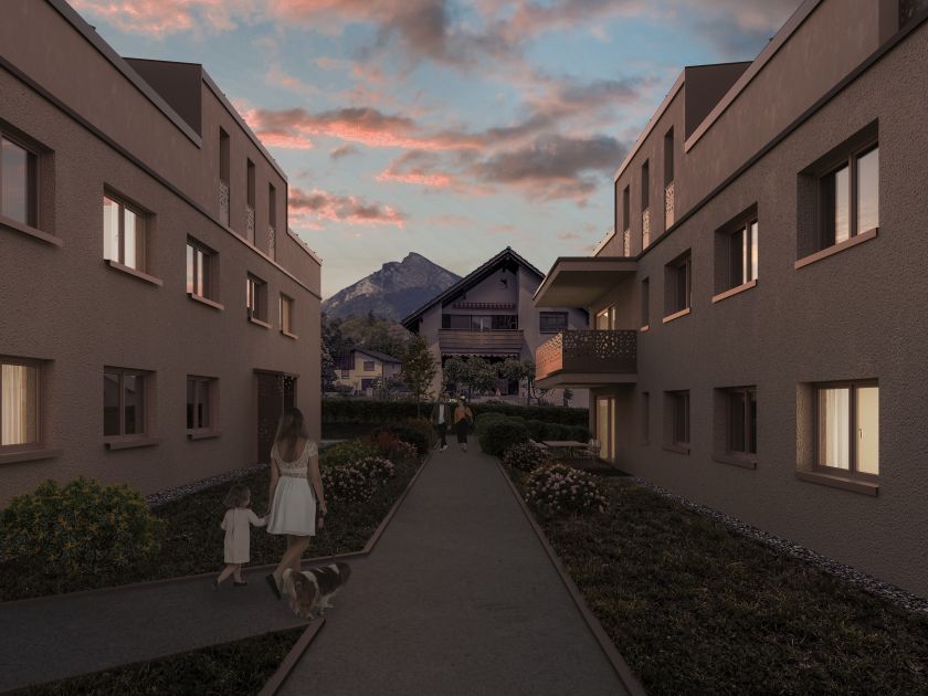 Mit RAGACES entsteht im Dorfkern von Bad Ragaz eine Wohnüberbauung mit vier Mehrfamilienhäusern und 28 Eigentumswohnungen.