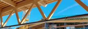 Nach den Baumeisterarbeiten steht nun der Holzbau im Mittelpunkt. Unsere Holzbauingenieure und -planer haben mit präziser Statik und sorgfältiger Detailplanung die Grundlage geschaffen. Im Oktober wurden die bis zu 10 m hohen Wandelemente und 19 m langen Binder montiert. Diese Woche folgte bei schönstem Wetter das beeindruckende Fachwerk. Fakten zum Fachwerk: Länge: 22.5 m Höhe:… Weiter »